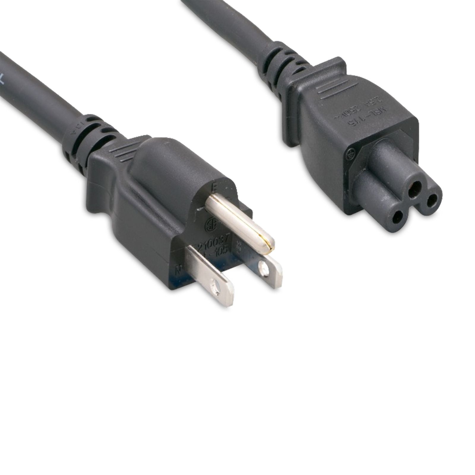 NEMA 5-15P to C5 3-Prong Laptop Power Cord 18 AWG Black 10FT